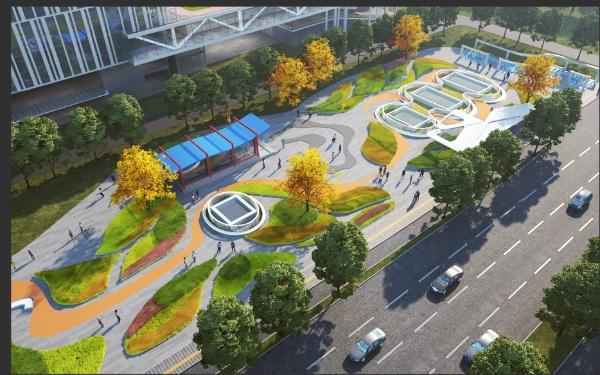 通过“隐藏式”设计,将车站出入口及风亭嵌入口袋公园,配套座椅、休憩乘凉、体育运动、文艺展陈、夜间经济等设施,打造集多功能于一体的公共空间。