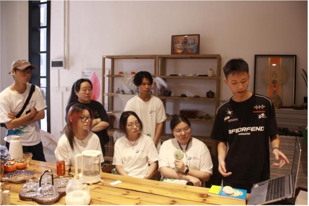 实践第二站,队员们探索咖啡“二次生命”,亲手将废弃咖啡渣变废为宝:在匠人演示下,融入大豆蜡制成散发醇香的环保咖啡蜡烛,还有用咖啡渣染色黏土塑造出带咖啡香的特色人物。这堂创意工坊课,让学子们深刻体验了绿色智慧与匠心的融合,他们详细记录工艺,为思考“如何深挖在地资源开发特色文创,延长产业链、促进增收与生态经济双赢”提供了宝贵案例。