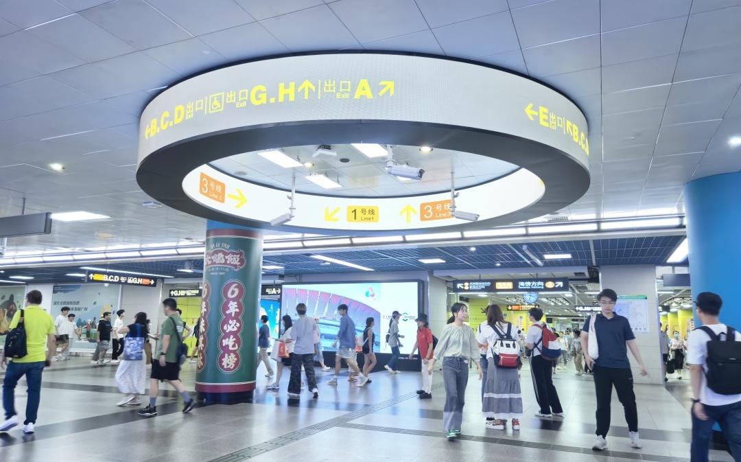 记者了解到,体育西路站作为广州地铁线网车站中的“流量明星”,车站客流常年稳居线网首位。7月暑运以来,体育西路站日均客流44.4万人次,较6月同期增长8%,其中换乘客流日均达33.2万人次。乘客问询需求显著增加,环形导向的应用,360度环形设计加上高亮度的LED屏,让乘客无论从哪个角度均可快速获取清晰、精准的指引,同时也能减少乘客在客流集中区域的停留时间,提升换乘效率。