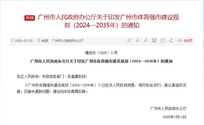 广州跑友将迎来重磅利好!近日,广州市人民政府办公厅近日印发《广州市体育强市建设规划(2024—2035年)》(简称《规划》)。《规划》提出全力建设三大国际中心,即国际体育消费中心,国际湾区体育中心,国际体育赛事中心的目标。