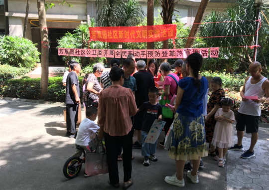 结合“双报到、双服务”机制,天河区全面激活党员突击队,推动党员深入网格开展爱国卫生活动,上门入户向居民普及预防“两热”知识,针对房前屋后、垃圾点位、落水位、卫生黑点等易滋生蚊虫的卫生死角处进行全面排查清理。