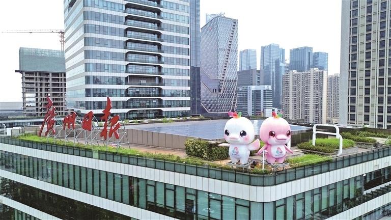 在位于猎德桥脚的广州报业文化中心天台正在组装巨型十五运会吉祥物“喜洋洋”和“乐融融”的雕塑造型,将成为新的广州城市地标和十五运会宣传的标识。广州还将通过全市重点点位倒计时牌等景观装置,结合地铁屏、商圈大屏、公交屏组成“万屏联播”矩阵,实现氛围全域渗透。