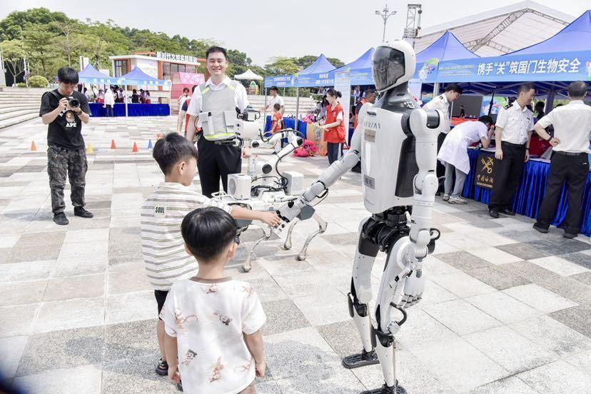 科技元素也为活动增色不少。广州供电局展位内,全运会保电“神器”——“啸天”四足机器人昂首踱步,高温巡检、隐患识别一机搞定。市民啧啧称奇:“全运用电,原来有‘赛博保安’”。