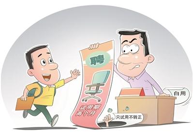 只试用不转正?试用变成了“白用”?据报道,某些企业存在“试用期合同”替代劳动合同、“模糊”试用期期限、变相延长试用期等规避劳动关系的违法行为。试用期本是雇佣双方的考察期、磨合期,却成了一些无良企业为节省用人成本而侵害劳动者权益的“挡箭牌”。对此,必须完善监管机制,加大打击力度,清除权益保护的死角、盲区,降低劳动者维权成本,更好营造法治化用工环境。不让试用期沦为“廉价期”“白用期”乃至劳动者权益保护的“真空期”,也是构建和谐劳动关系的题中之义。