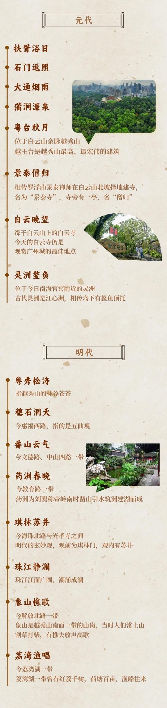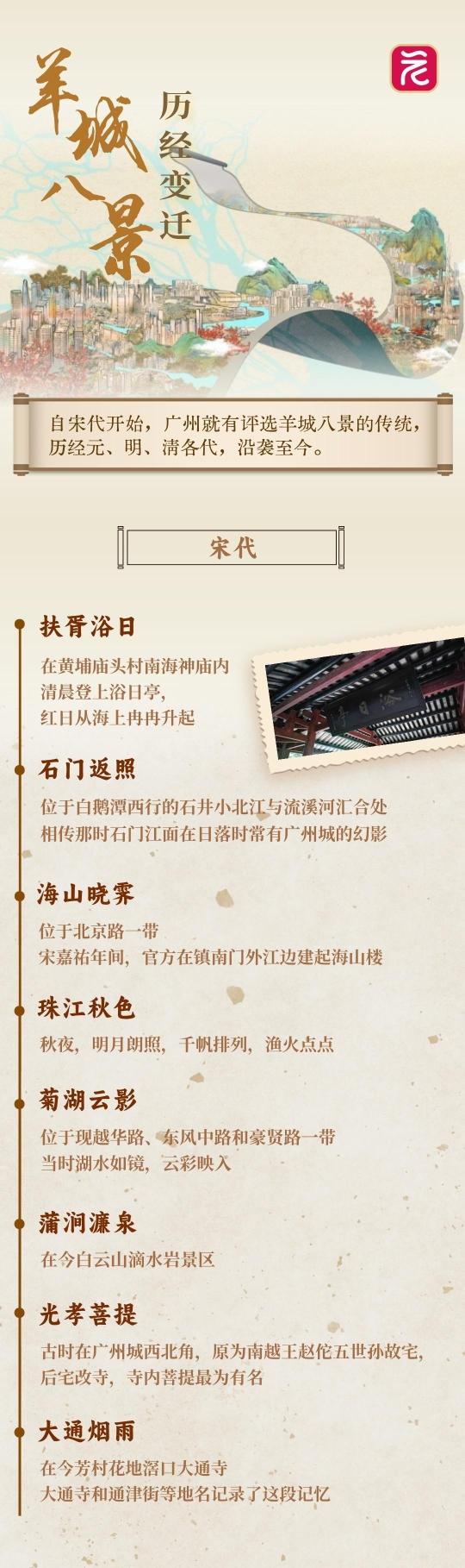 自宋代开始,广州就有评选羊城八景的传统,历经元、明、清各代,沿袭至今。