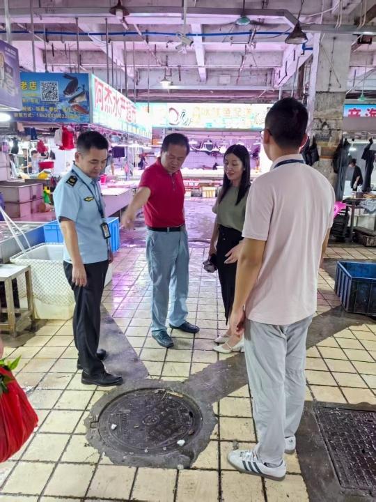 各市场监管所因地制宜,组建农贸市场专项巡查队伍,对辖区市场进行全天候、拉网式排查。发现问题,立行立改:督促市场即刻清理档口堆积杂物,为裸露的下水道排污口加装网罩,修补破损地面消除积水隐患……全力降低蚊虫孳生风险苗头,筑牢安全堤坝。