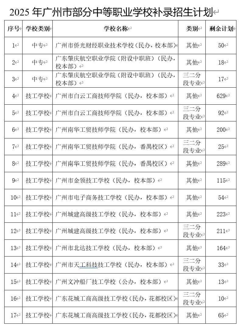 (一)广州市今年已报名参加中考的考生,凭2025年广州市初中学业水平考试成绩证明和本人身份证自行联系未完成招生计划的中职学校,由招生学校在省中招平台办理注册入学补录手续。