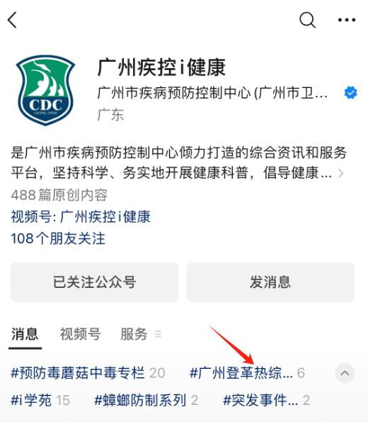 2.您也可以通过进入“广州登革热综合防制系列行动”专栏进行查询。