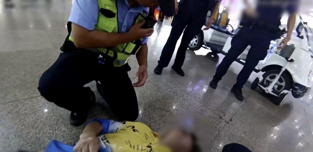7月28日21时许,广州南站派出所执勤民警驾驶巡逻车行至东门区域时,敏锐发现一名男性旅客面色异常、身体摇晃。民警立即停车上前查看,就在靠近瞬间,旅客突然倒地,全身剧烈抽搐不止,情况十分紧急。
