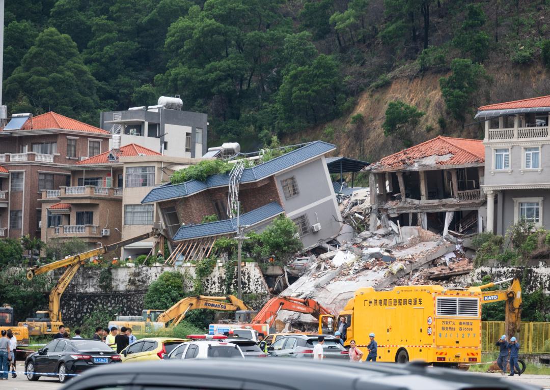 8月6日8时30分许,由于连日大雨造成山体垮塌,致广州市白云区大源街大源村黄庄片区有房屋受损,14人被困,多部门展开联合搜救。截至8月6日18时,消防救援队伍已救出8名被困群众,其中1人死亡7人受伤,仍有6人失联,搜救仍在进行中。