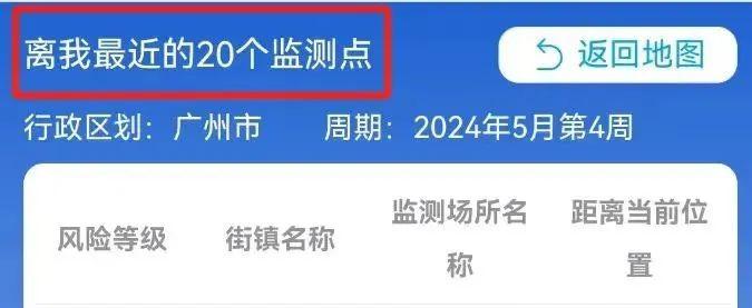 还可以通过地图定位,查询周边离定位最近的20个监测点的蚊媒密度情况。