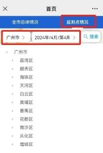 “监测点情况”中可查询不同区或街镇在不同监测周期内监测点的蚊媒密度,点击监测点可查询监测点具体情况。
