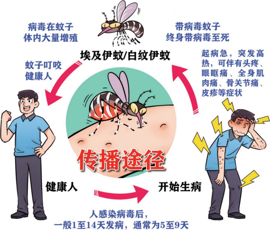 登革病毒主要通过蚊子叮咬传播,感染后一般经过1-14天的潜伏期,患者会出现突发高热、头痛、关节痛、肌肉痛、皮疹等症状,严重时可危及生命。登革热目前没有特效药和有效疫苗,因此,了解蚊子习性,做好防蚊灭蚊,是预防登革热的关键。