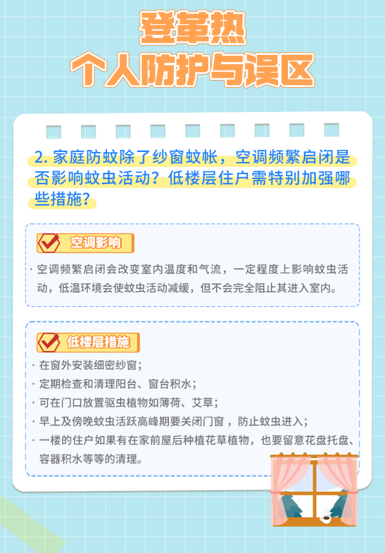 (3)宣传教育:向居民宣传防蚊灭蚊知识,提高居民自我防护意识,鼓励居民主动参与清理自家周边积水(楼顶的天台等)。