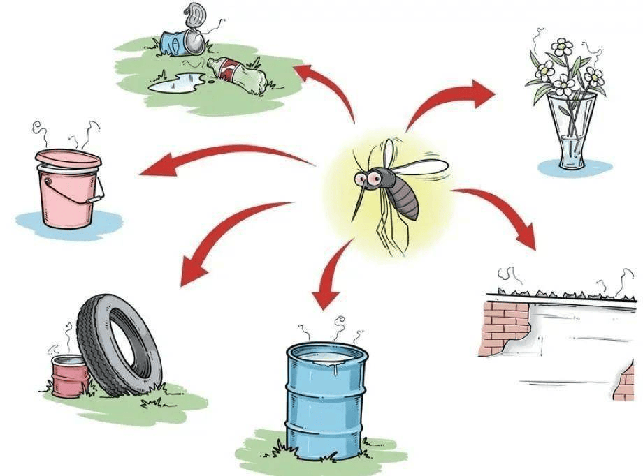 易忽视积水区域:花盆托盘、闲置轮胎、空调接水盘、树洞、竹筒内积水,以及建筑工地的积水坑、学校洗手间或者单位饭堂的储水池等。