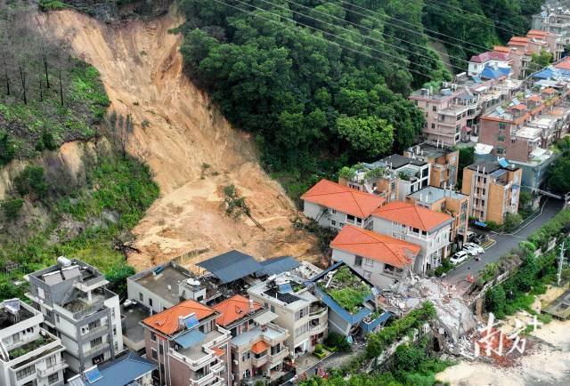 一位周边居住的大姐告诉记者,她家住在山体垮塌的房屋对面,昨天早上起床后就在阳台看到对面两栋房屋歪斜,“希望里面的人能尽快被救出来”。