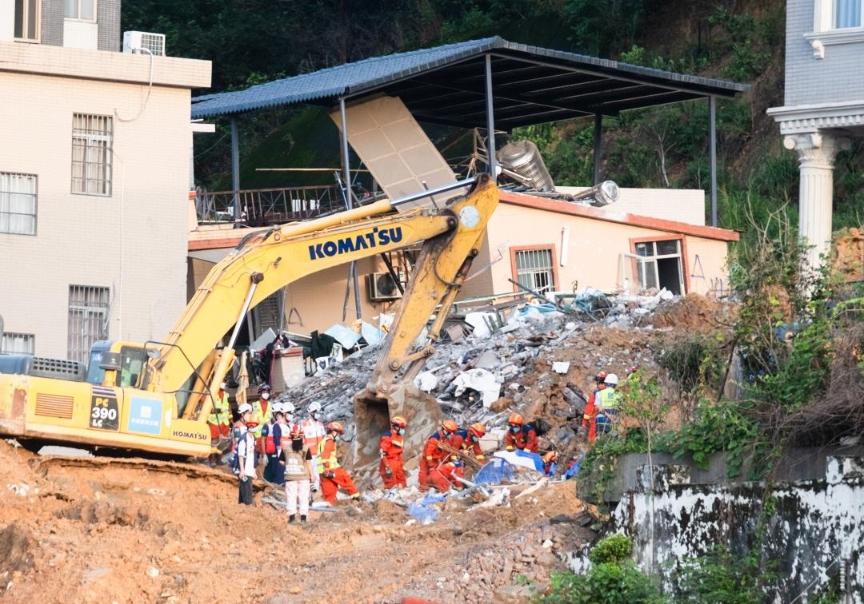 8月8日8时13分,白云区大源村山体垮塌第13名被困人员被发现。救援人员脱帽后将其抬出。8时21分,该名被困人员被抬离现场,其身体由塑料袋状物包裹。