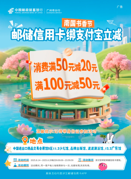 广东新华发行集团再次携手中国邮政储蓄银行广州市分行助力书香惠民,折上叠加邮储银行权益,合计最高可减200元。购书折后叠加工商银行权益,合计最高可得155元优惠。