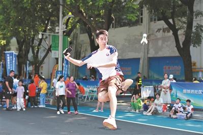 市民将毽子高高踢起。图/广州日报全媒体记者杨泽彬 实习生杨礼彰