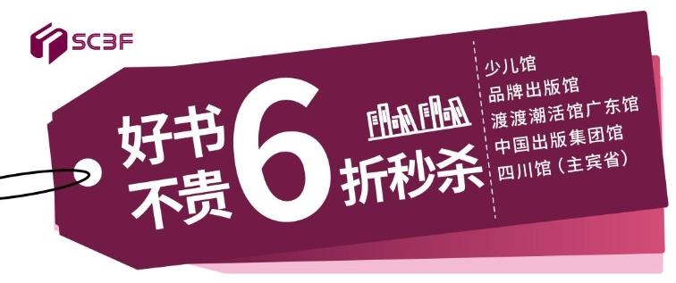 “阅·生活”展厅(11.2号展厅)少儿馆、品牌出版馆、渡渡潮活馆以及“阅·未来”展厅(12.2号展厅)广东馆、中国出版集团馆、四川馆(主宾省)同步放送全场6折购书优惠。