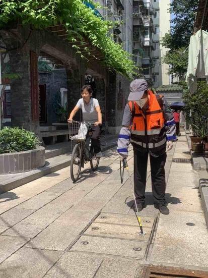 除了天台积水和杂物,工作人员还会重点排查沟渠、下水道,以及居民家中的水生植物等。一些西关大屋之间缝隙狭窄,人侧身都难以进入,是清理的难点,则请专业团队用专业设备把夹缝中的垃圾夹出。