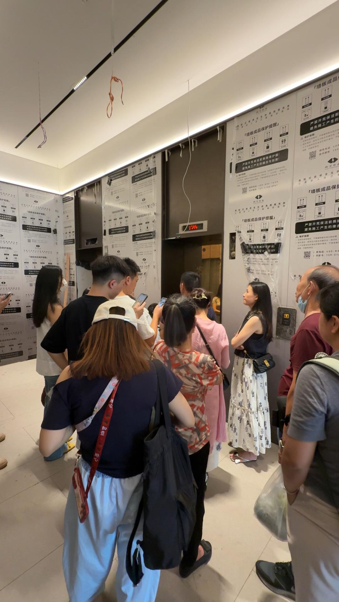 记者走访时并非上下班高峰期,但排队等电梯的住户已经排到了大厦外面。据现场住户反映,遇到高峰期,队伍能排到大厦外的人行道上,足足几十米长。一位住户还打开手机视频向记者展示了高峰期排长龙的情况。