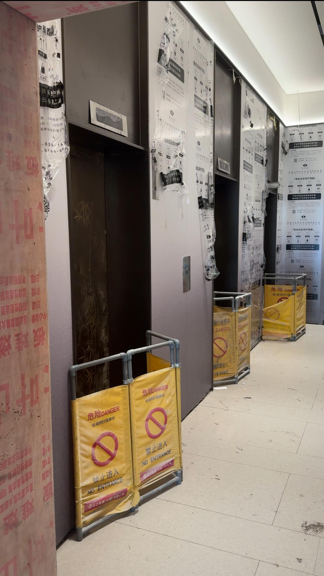 家住越秀区某小区10楼的张先生反映,这栋大厦为商住一体楼,其中1~9楼为商业,10楼~36楼为公寓住宅,共600多户。张先生表示,今年7月底和8月初,该大厦不时只有1部电梯运行。7月28日和8月4日记者两次走访发现,该大厦6部电梯当时确实仅有1部在正常运行,其余几部电梯的按键面板灯并未亮起,电梯口设有围蔽。