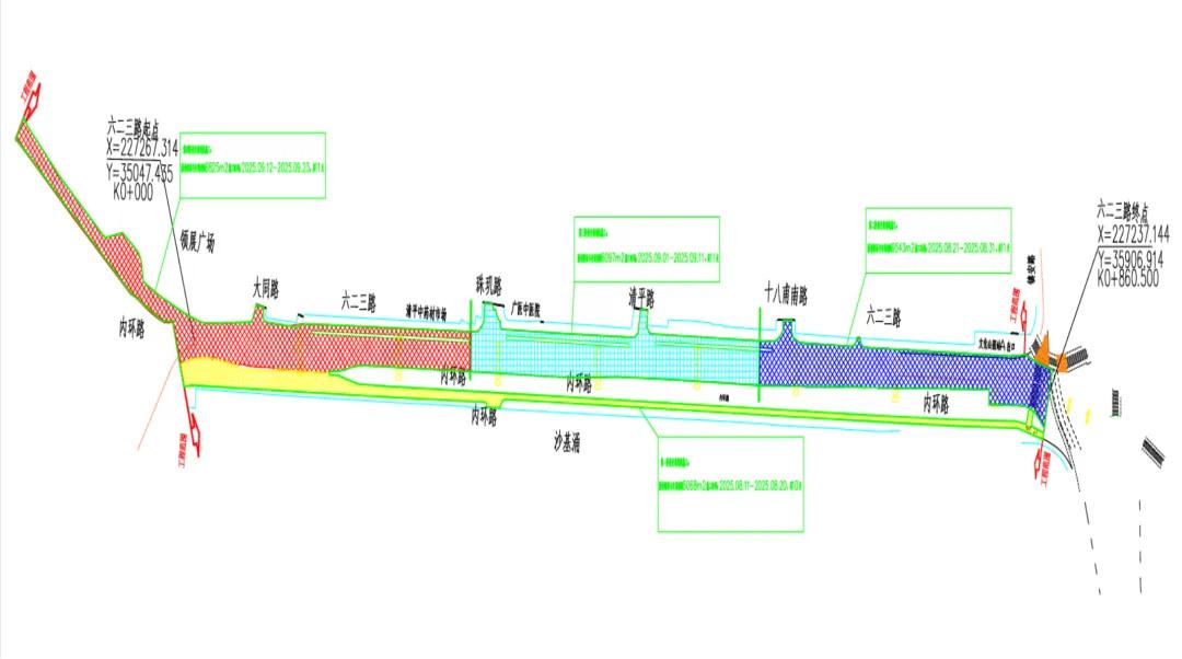 记者获悉,为完善周边配套设施,促进旧城区有机更新,顺利推进市政路改造工作,广州荔湾区六二三路将全线进行道路改造铺设沥青与中间机非护栏更换施工。施工时间为2025年8月11日至2025年9月24日(夜间施工时间,22:00至早上6:00)。