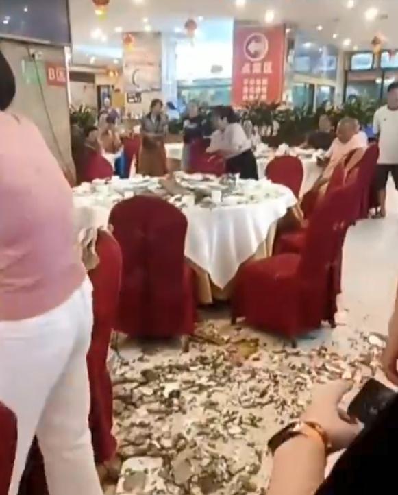 近日,有街坊报料称,广州市天河区东璟荔枝楼酒家的天花板突然掉落,刚好砸在食客的饭桌上,所幸无人受伤。街坊拍摄的视频显示,在一间酒楼内,石灰碎片散落一地,现场有不少食客,顶部破损的位置疑似裸露出钢筋。