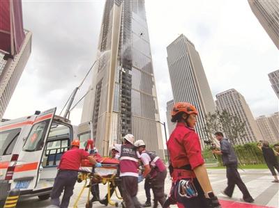 当天下午,广州市国际金融城内,一辆辆消防车呼啸而过,一架架无人机升空救援。演练模拟某超高层建筑18楼因电气线路故障引发火灾,火势在10分钟内蔓延至300平方米,高温烟气引发闪爆,造成多名人员被困。