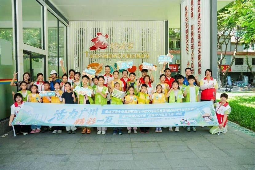 8月8日,“活力广州 精彩一夏”黄埔区青少年暑期实践行动暨文明单位与黄埔区新时代文明实践中心结对共建2025年“反餐饮浪费宣传周”活动,在黄埔公园新时代文明实践驿站正式启动。