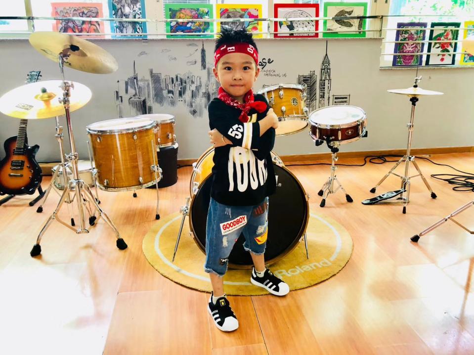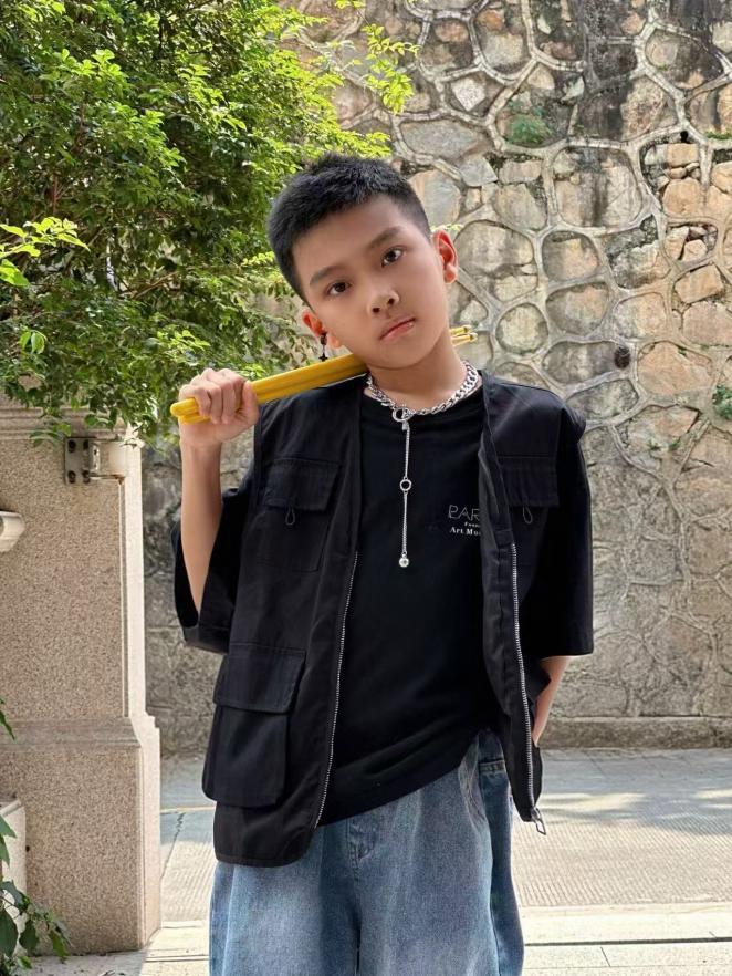 “第一次看到架子鼓,觉得它又酷又响亮,像超级英雄的武器!”黄梓轩回忆起初见架子鼓的兴奋。然而,枯燥的基本功练习很快让年幼的他打起了退堂鼓,“每天重复练节奏型,手臂又酸又累,我哭着说不想学了。”转折点来自父母的鼓励和老师的引导——他们将练习曲目换成《我爱你,中国》等充满故事感的音乐,让他在旋律中重燃热情。2019年,6岁的黄梓轩以这首曲目斩获“星耀杯”学前组乐队金奖,人生第一次登上领奖台的他,终于明白了坚持的意义。