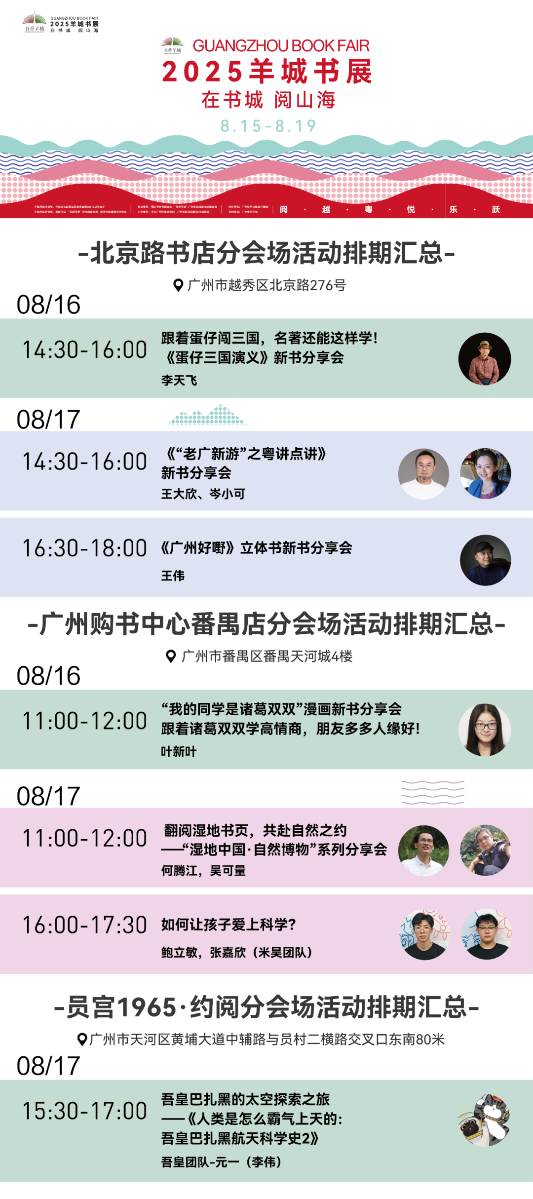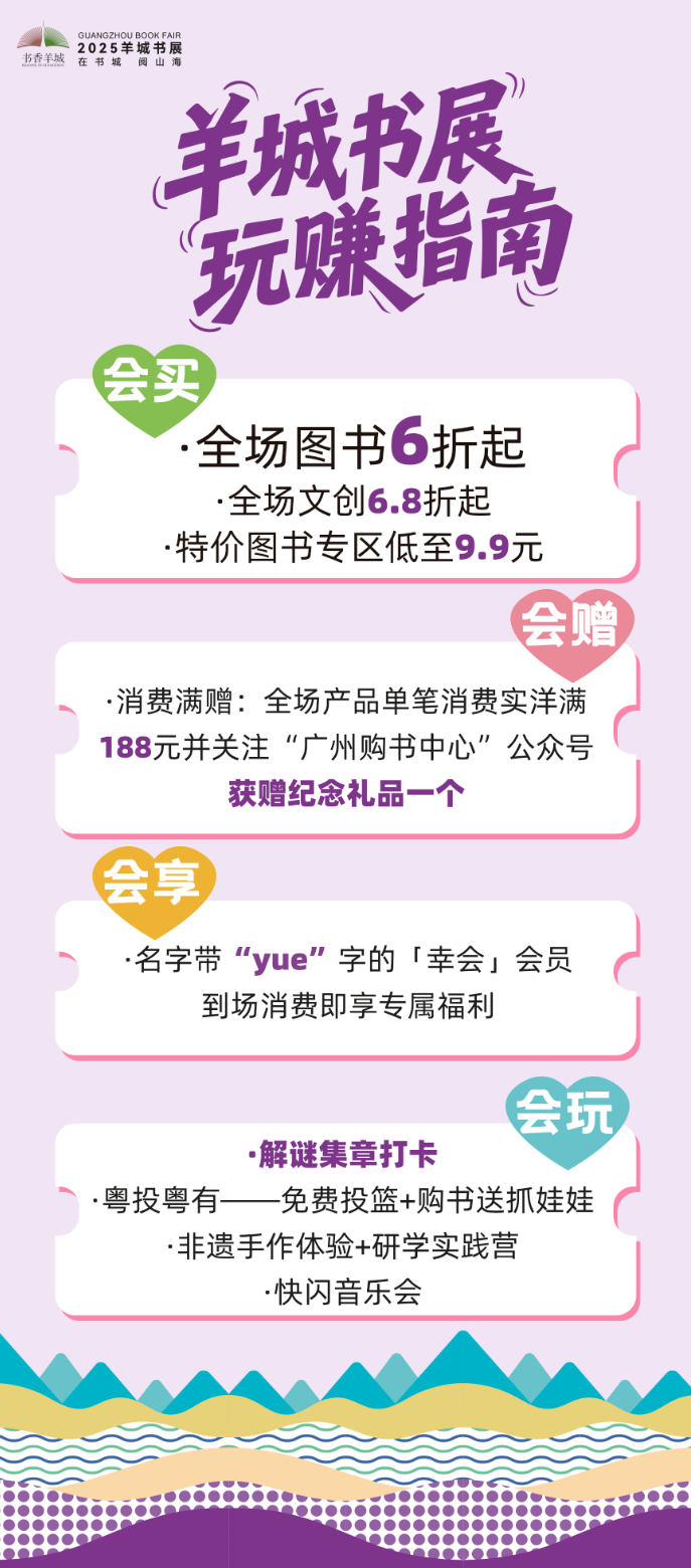 据悉,在羊城书展这座超大型花城书房中,将特邀“2025书香羊城好书榜”获奖作家及刘楚昕、混子哥(陈磊)、杨素秋、杨晚晴等文化名家开展新书首发、主题讲座等线上线下活动,丰富阅读体验。