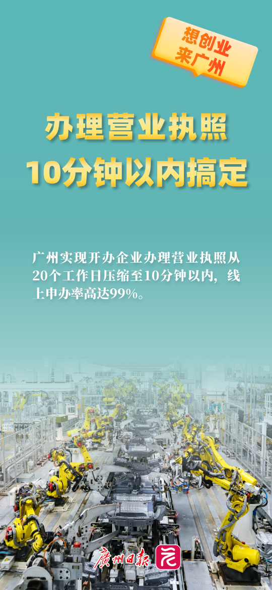 广州对市场主体的“友好”,更深刻体现在持续放宽市场准入的改革突破中。从率先推行商事登记全程电子化,到实现开办企业“一网通办、一窗通取”,再到如今“AI导办”“AI帮办”“AI审批”智能服务全域覆盖,广州市市场监管局持续推动政务服务向更智能、更便捷的方向迭代,以“敢闯敢试”的魄力为市场主体带来看得见、享得到的实在便利。作为在线智能政务服务的代表,“广州市场主体直通车”小程序更是撬动了一场“服务大变革”,实现开办企业办理营业执照从过去的20个工作日压缩至10分钟以内,线上申办率高达99%。