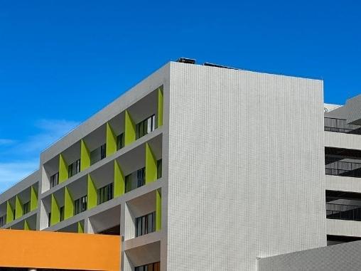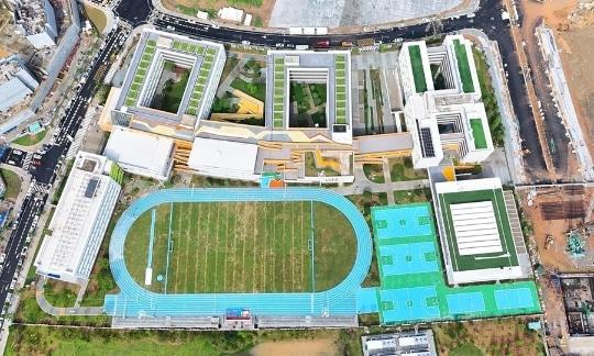 作为横沥岛尖开发的首批核心教育设施,48班小学位于明珠湾区横沥岛尖凤凰二桥东侧、大元路北侧核心区域,总建筑面积约4.3万平方米,包含多功能体育馆、教学楼、综合楼、300米智慧AI跑道等设施。建筑之间设置风雨连廊,首层局部架空,地下室为一层智慧车库。规划设置48个班级,预计可满足2160个学生学习需求。项目建设结合“精明增长、精致城区、岭南特色、田园风格、中国气派”的二十字规划理念,贯彻生态优先、绿色低碳的发展要求,建筑外观以纯净白色为主基调,点缀黄绿色,功能分区科学高效,教学区与运动场相对独立又有机联动,在简约现代风格中彰显青春活力。