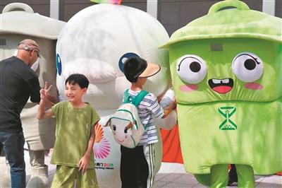 活动现场,全国生活垃圾分类吉祥物“小分宝”携手十五运会吉祥物IP“喜洋洋”“乐融融”进行跨界联动,将垃圾分类的环保理念与十五运会绿色办赛理念巧妙融合,让城市更美好,让全运更精彩。“‘小分宝’牵着‘喜洋洋’‘乐融融’好可爱!”不少人争相拍照打卡,记录下为绿色全运加油打call的美好瞬间。