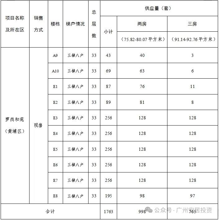 萝岗和苑项目销售基准价为15800元/平方米,本次供应第二批房源1763套,房屋户型、套数等情况详见下表: