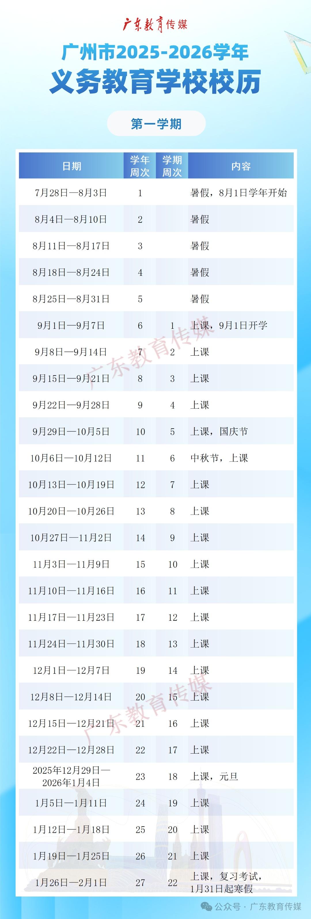 秋季学期开学:2025年9月1日