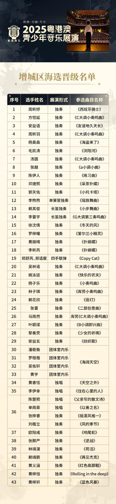 附:晋级选手名单(43人)