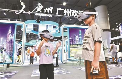 8月22日,第33届广州博览会盛大开幕,图为孩子们体验VR设备。