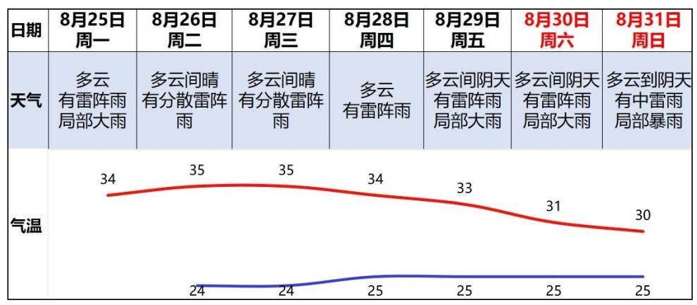 8月25日,市防汛防旱防风总指挥部办公室与市气象局、省水文局广州水文分局对我市的气象水文情况进行了会商。会商结论指出,预计,25日,受“剑鱼”外围环流影响,我市有雷阵雨局部大雨,广州港区阵风维持6~7级;26日至28日,多云,有分散雷阵雨;29日起,受南海热带系统影响,有(中)雷雨,局部大雨或暴雨。