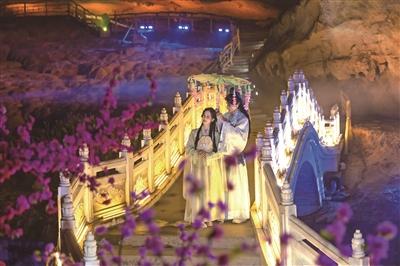 七夕之际,少不了鹊桥相会。位于粤北的连州地下河景区将一条石桥变身成为“网红桥”。连州地下河这座桥原为连接河两岸的桥,用汉白玉石头建成。景区将桥改成现实版的鹊桥。情侣穿过地下河曲径通幽的进洞栈道,来到网红“鹊桥”边,体验浪漫温馨气氛。