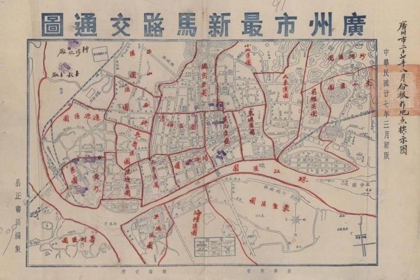 1938年8月广州市被炸地点标示图,图片由广州市档案馆提供