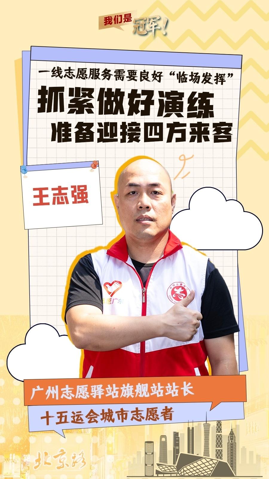 谈到十五运会,王志强说,希望用志愿服务的活力与温暖,向粤港澳大湾区乃至全国各地的人展示这座城市的热情。
