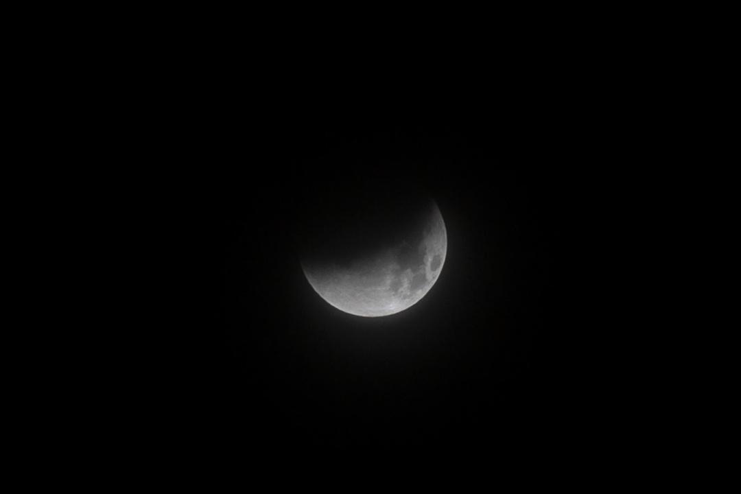 昨天23时30分,记者在广州市海珠区进行观测,当时夜空中飘着薄云,肉眼较难观测到月亮的明暗变化。大约一个小时后,月食阶段正式开始,从记者所在位置观测,遮挡月亮的云层变厚,只能看到天空中的一团光影。而身处广州其他地方的观测者,则有人肉眼观测到月亮的左上角开始变暗。此后记者所在地上空云层越来越厚,已经很难找到月亮的踪迹。广州其他地方的观测者,虽可看到月亮光亮部分越来越小,但鲜少有人观测到完全进入地球本影内的“红月亮”。