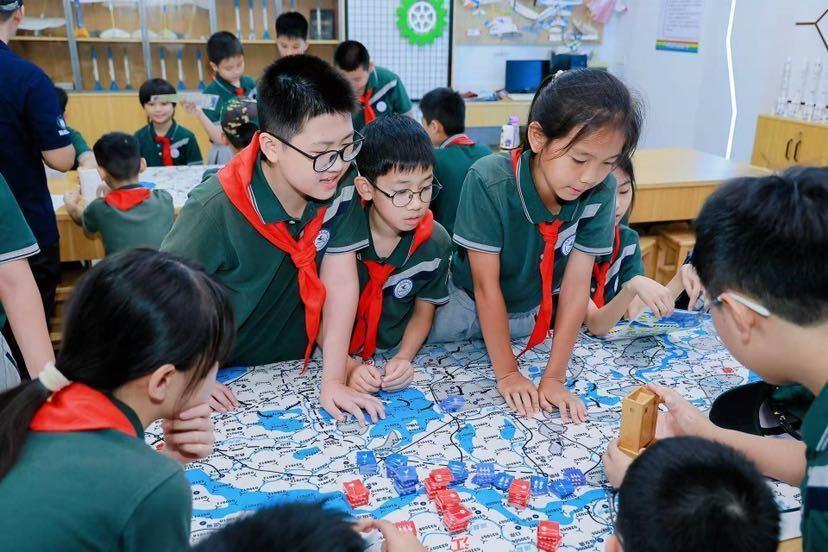 作为全国航空特色学校、广东省航空航天科普教育定点基地,越秀区旧部前小学红色底蕴深厚。近年来,学校将国防教育融入立德树人全过程,通过国旗护卫队训练、军体操普及、国防研学之旅、跑操训练、队委国防成长夏令营等活动,积极构建“课堂教育—实践体验—文化浸润”三位一体的国防教育体系。