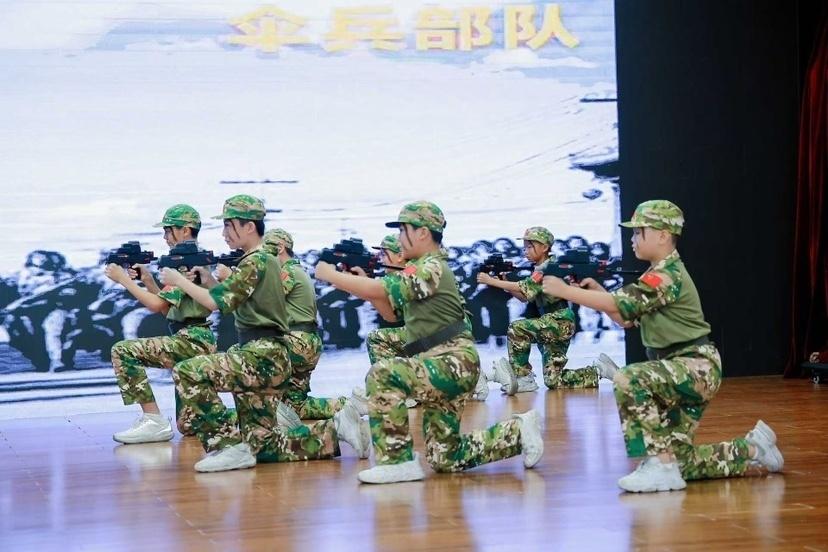 随后,“致敬南粤丰碑”抗战故事宣讲深情回顾了南粤儿女浴血奋战的英雄事迹,将师生带回烽火连天的抗战岁月,感悟先烈们视死如归、匹夫有责的爱国情怀。越秀区旧部前小学学生表演的舞蹈《曙光》和朗诵《铭记·前行》,表达对历史的敬畏与对和平的珍视,传递出“铭记历史、吾辈自强”的坚定信念。战术表演节目中,国防小队队员们行动敏捷、目光坚定,展现出新时代青少年良好的军事素养和昂扬状态,赢得阵阵掌声。