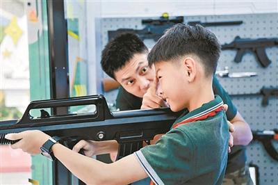 在体验区,十余个互动项目各具特色:同学们在95式模拟自动步枪分解结合摊位前认真听讲,小心翼翼进行拆装练习;国防教育大篷车轻武器模拟射击区传来阵阵喝彩,命中目标的同学兴奋得手舞足蹈;无人机飞行区域,一架无人机在熟练操控下腾空而起。北斗红蓝对抗、无人船操控、军棋推演等项目围满了跃跃欲试的学生,同学们在专业人员指导下进行操作,在亲身实践中感受科技在国防建设中的重要作用。