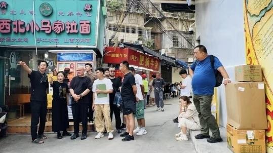 图:庙前直街是东山口人流量最大的街道之一,主创团队在讨论怎样解决拍摄的问题。