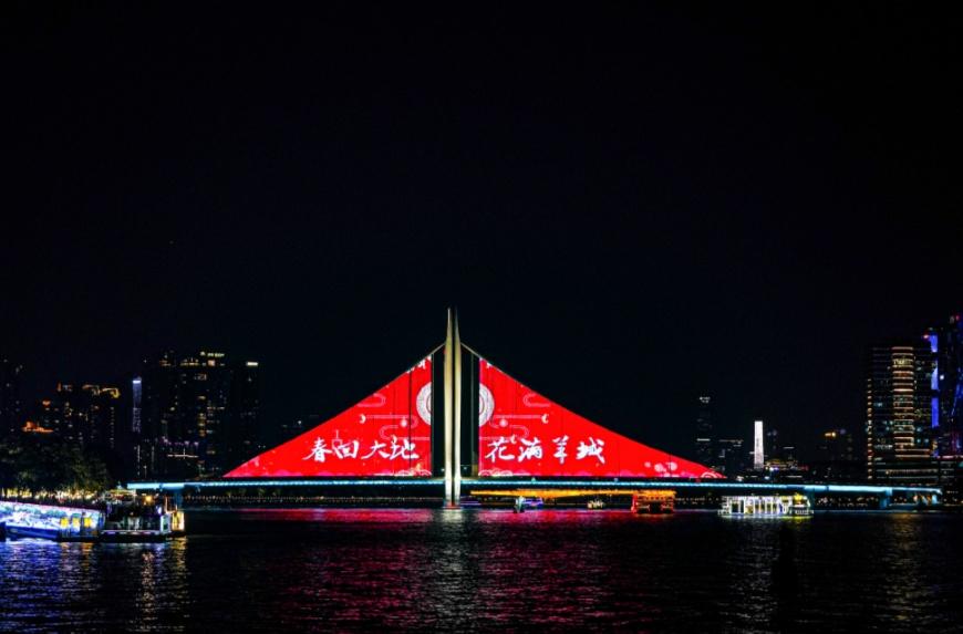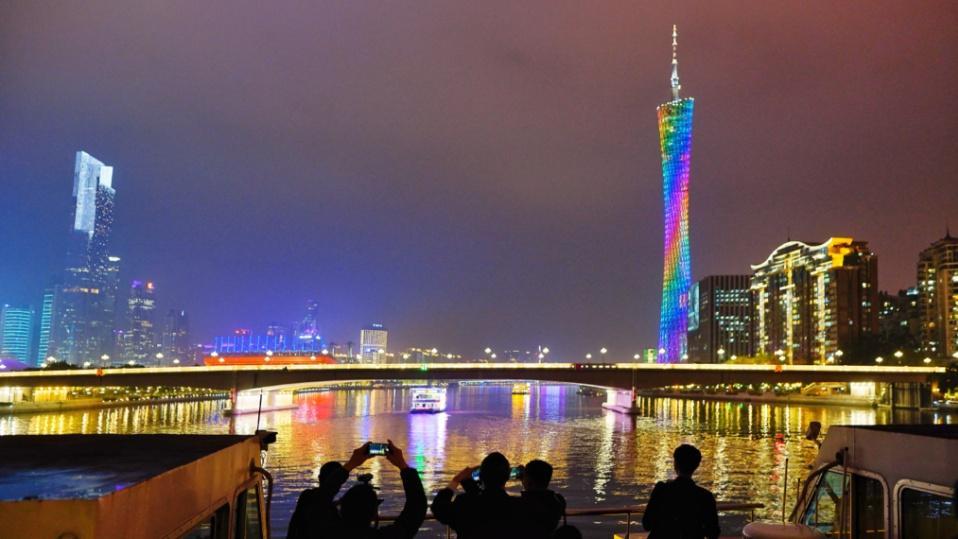 猎德大桥亮起国庆主题灯光秀(资料图片)